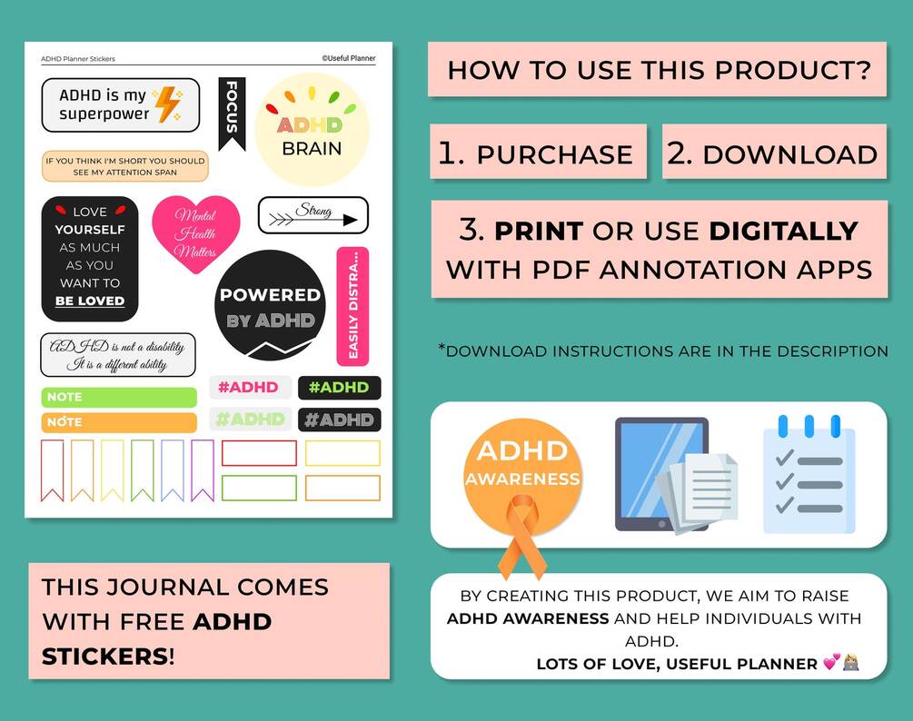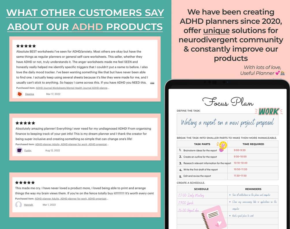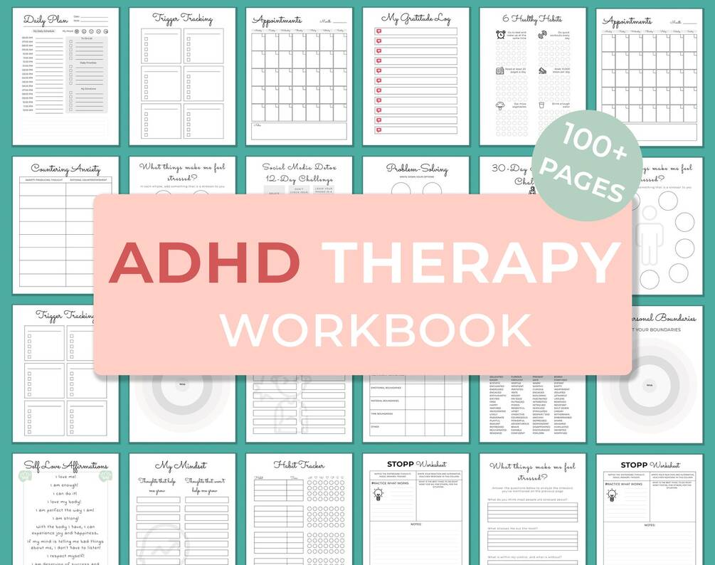 ADHD therapy worksheets, ADHD planner, Mental Health Journal, ADHD organization digital printable planner