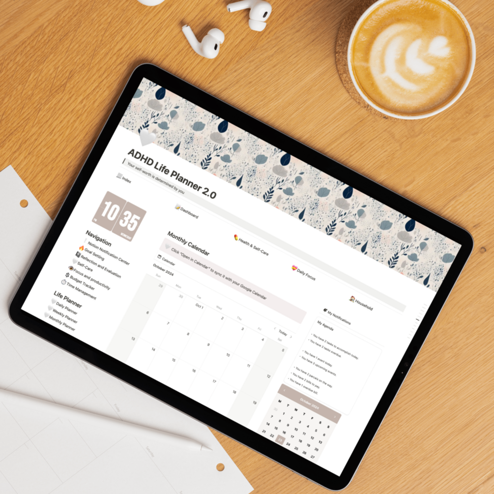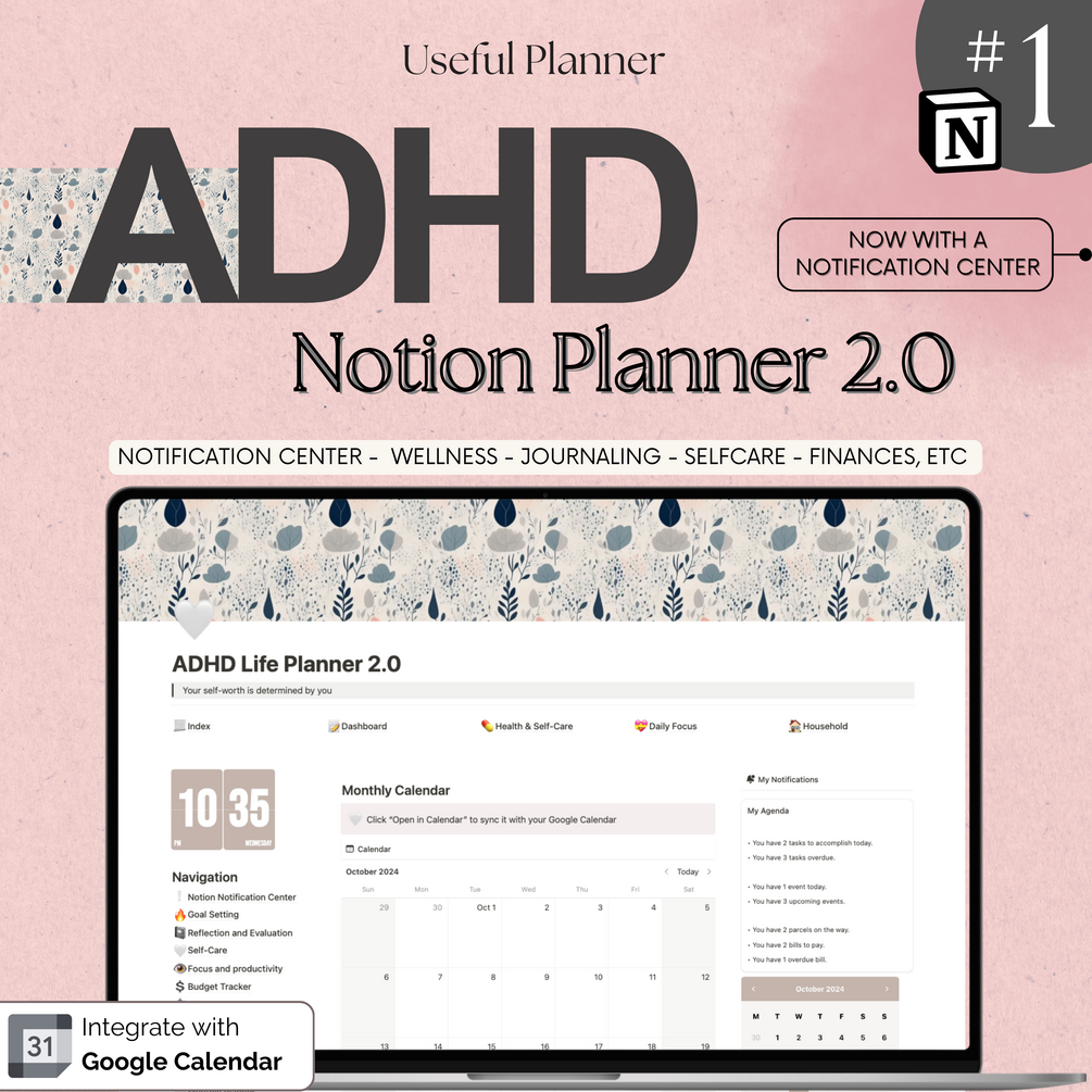 ADHD Notion Template 2.0 with Notification Center, ADHD planner, ADHD journal