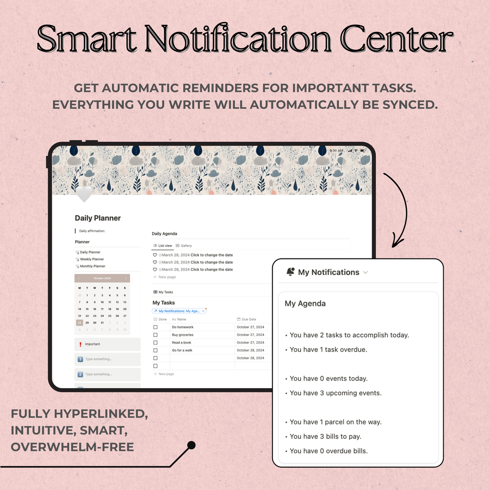 Notion Template with a fully automated Notification Center to simplify your life.
