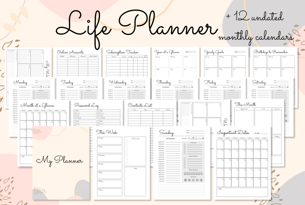 - Monthly/weekly/ daily planners
