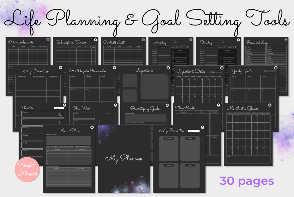 Planning, Important Reminders, ADHD Focus Tools (32 pages):