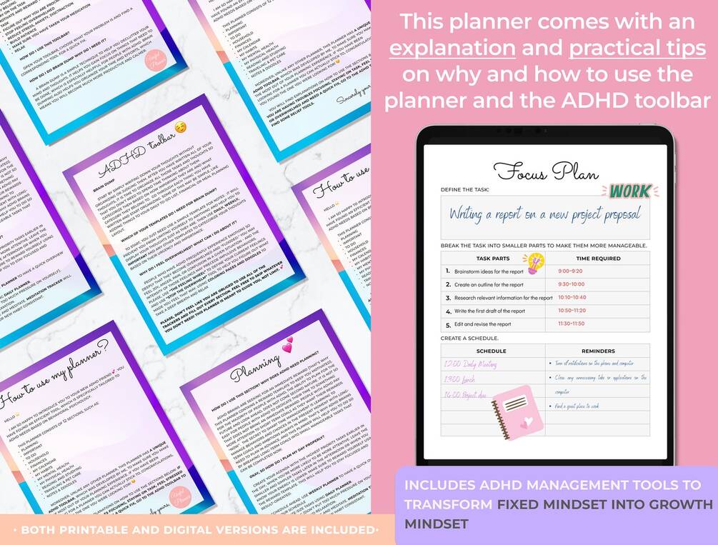 Unlike any other planners (which are designed for neurotypical people), this planner has a unique ADHD toolbar, which was developed by me after reading and analyzing lots of scientific information, to make sure you make the most out of your planning experience. If you have been looking for a planner you can actually stick to, congratulations, you found the one you were looking for! π + it includes both digital and printable versions (so you don't have to overpay for each version), additional covers and ADHD stickers.