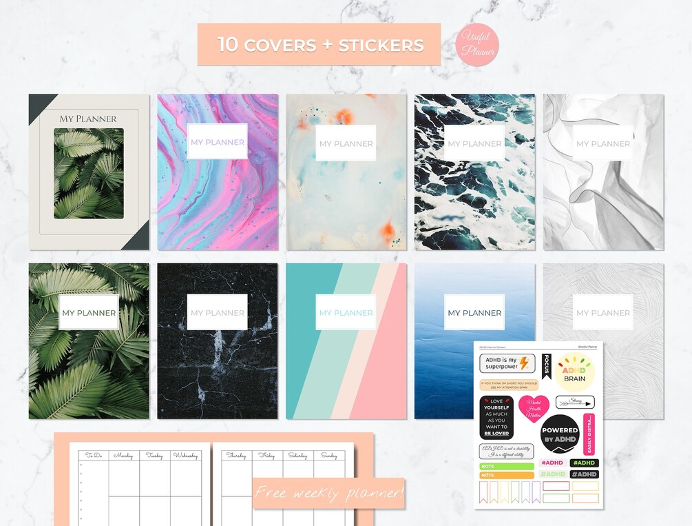Unlike any other planners (which are designed for neurotypical people), this planner has a unique ADHD toolbar, which was developed by me after reading and analyzing lots of scientific information, to make sure you make the most out of your planning experience. If you have been looking for a planner you can actually stick to, congratulations, you found the one you were looking for! π + it includes both digital and printable versions (so you don't have to overpay for each version), additional covers and ADHD stickers.